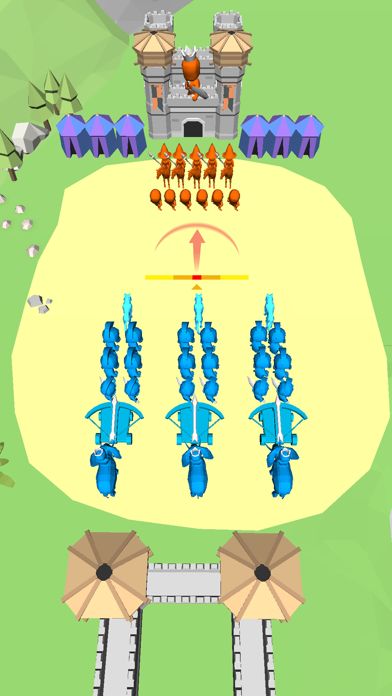 - 当战斗时,您的目标是击败敌方士兵并攻占他们的城堡。点击您的士兵图标将他们部署到战场上。根据战况注意在合适的时间派遣合适的兵种。