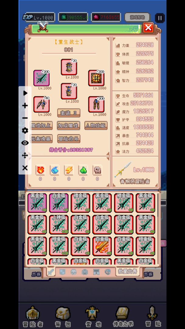 有很多大佬发过重生卡属性攻略,但无奈我天资愚钝,试验了半天才明白怎么卡,因此想着分享下个人的详细步骤。如有错误欢迎指出。 准备:第一次到1000级,先别急着干啥,首先做两套1000级装备,一套全洗速度,一套洗穿甲攻击之类的战斗属性。这是过渡用的,凑合一下就行了。 重生步骤: 1,点右上角【设置】,关闭高速刷怪。 2,点击【挂机设置】,把冒险者协会的勾去掉。等待刷出一个协会。 3,点开左下【冒险者】