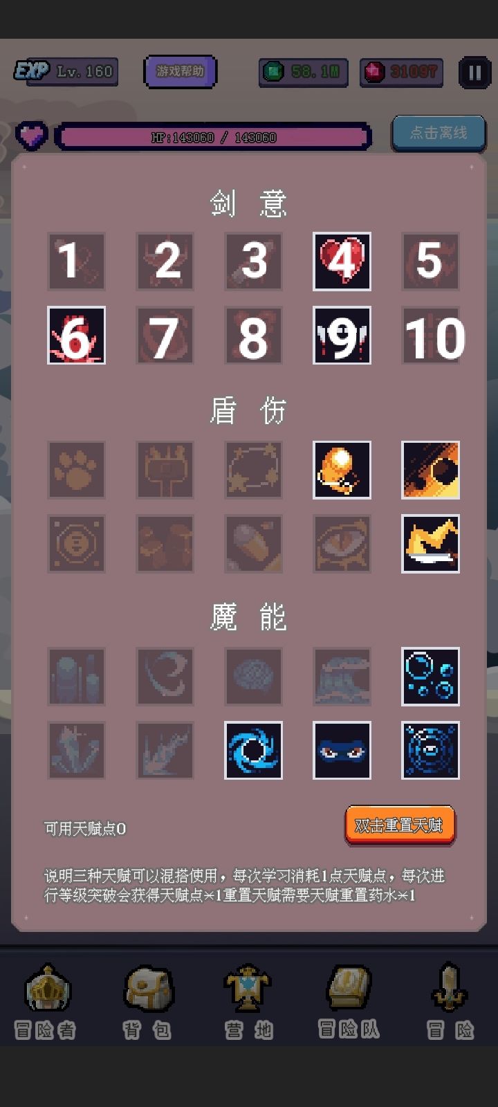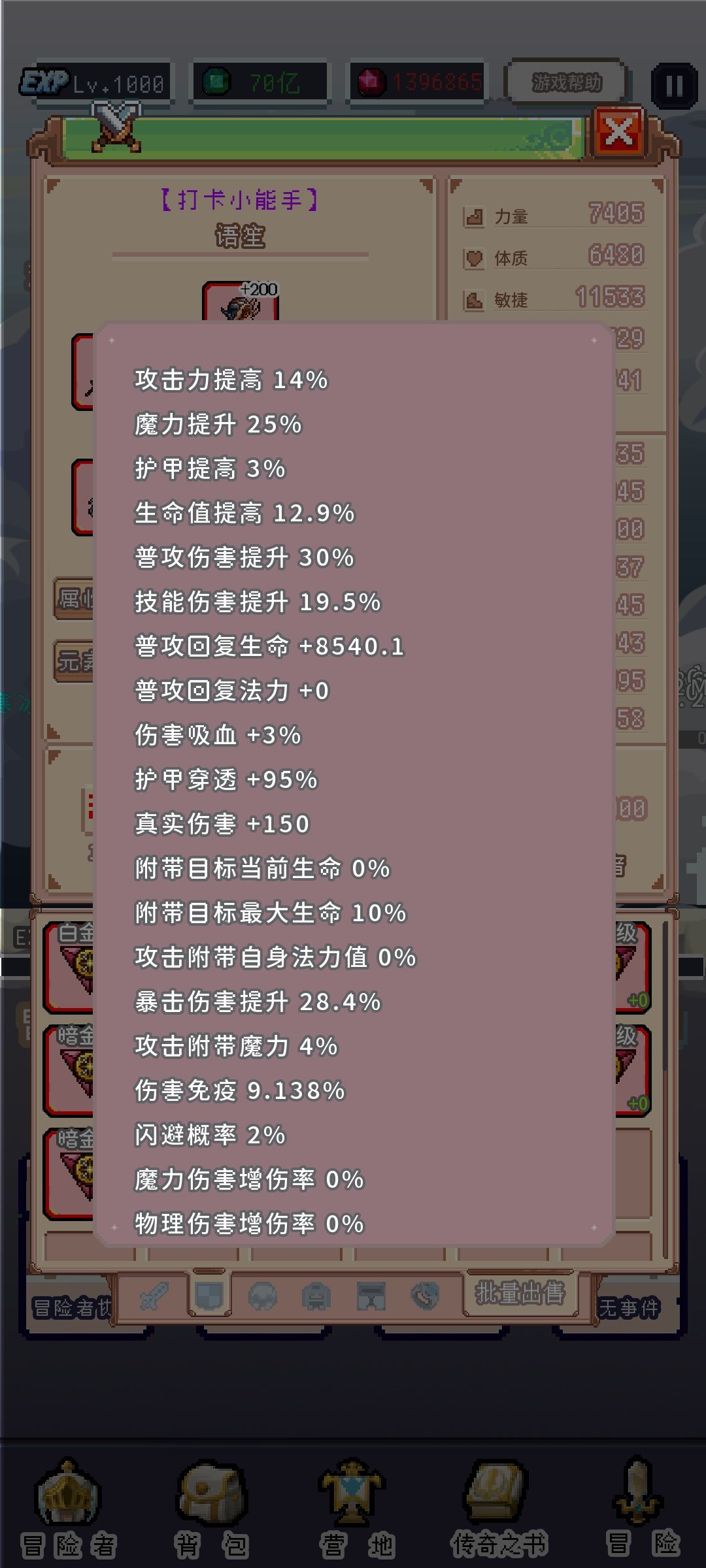 卡属性教程(中途请不要失误,否则前功尽弃) 属性点留下除0外任意数量; 打开“属性加点”页面,点击最上方属于“冒险者”页面的“×”点击“冒险者协会”,点击“重生”; 点击“冒险者”加上除0外任意属性点(可以不加完,但是要在升级前加上,不然容易损失属性点,蚊子再小也是肉嘛~); 点击“√”,即完成一次卡属性,每次最多2997点,不建议留太多点,麻烦; 要是一点都不想损失,可以在“||”界面(右上角)将“快速刷怪模式”改为“OFF”状态,然后点击“进阶系统”,进入“史莱姆”再完成上述操作。 我是“曾经”,为新手提供微小的游戏帮助