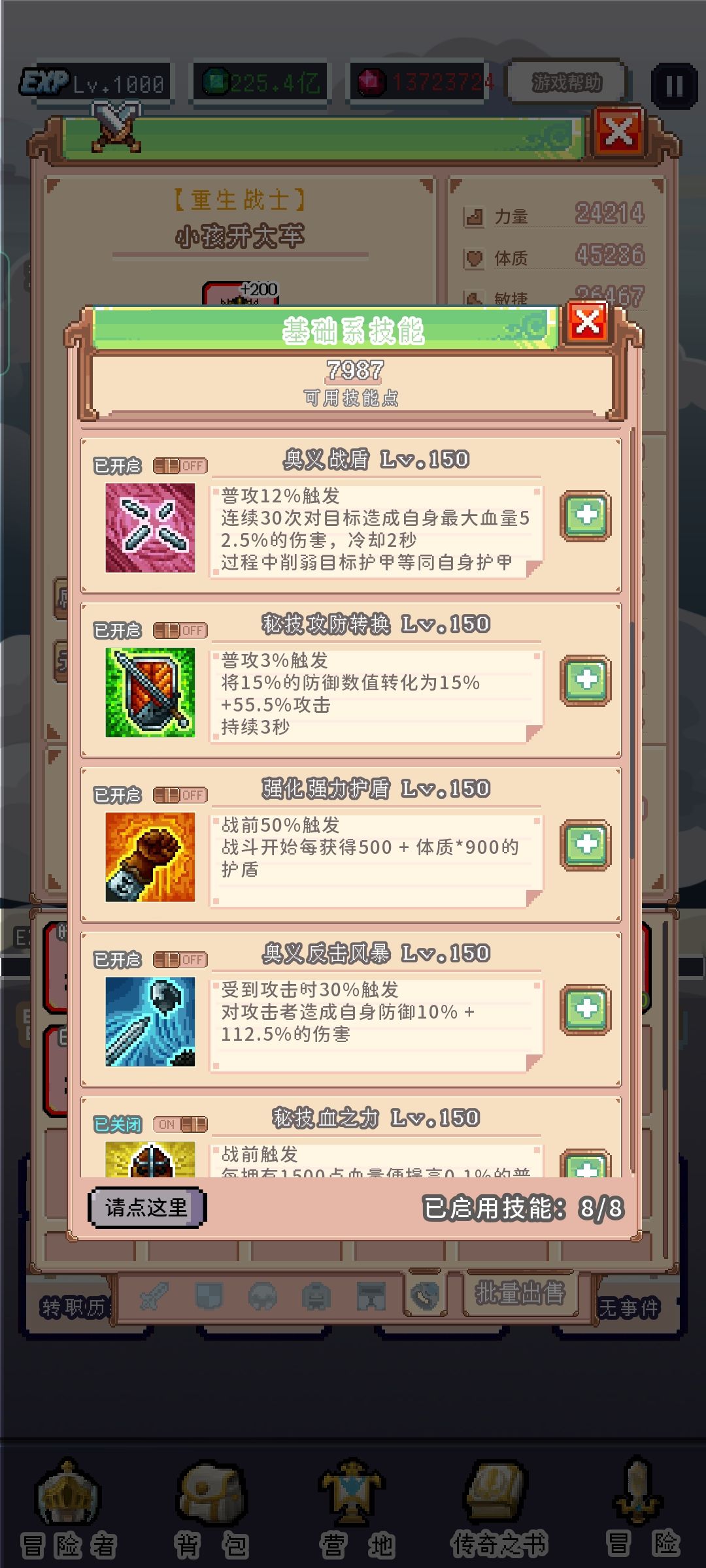 欢迎来到目标是传说级勇者,一个不断强大不断挑战自我的冒险放置类挂机游戏。 (无广告,游戏体验非常不错) 新手入门指南:本游戏大致分为三阶段:1-1000级阶段。1000级开始之后的转生阶段。转生完成之后的熔岩副本阶段。 (开局一定要20属性点全点幸运哦) 第一阶段:这是玩家们的入门阶段,你需要在这个阶段熟悉游戏并不断提升等级至1000级。如下是基本指南 【历练】,提供大量的经验值(远超挂机和击杀怪