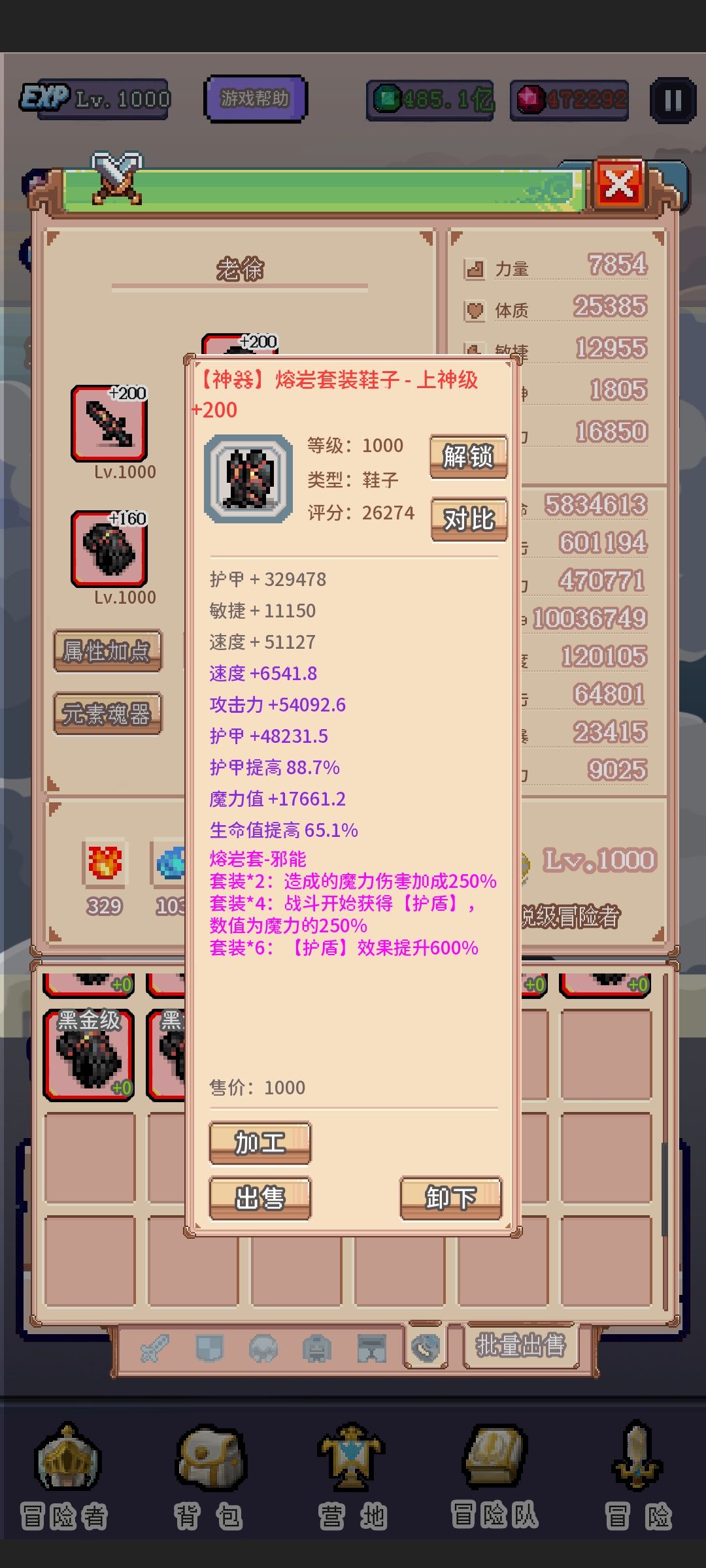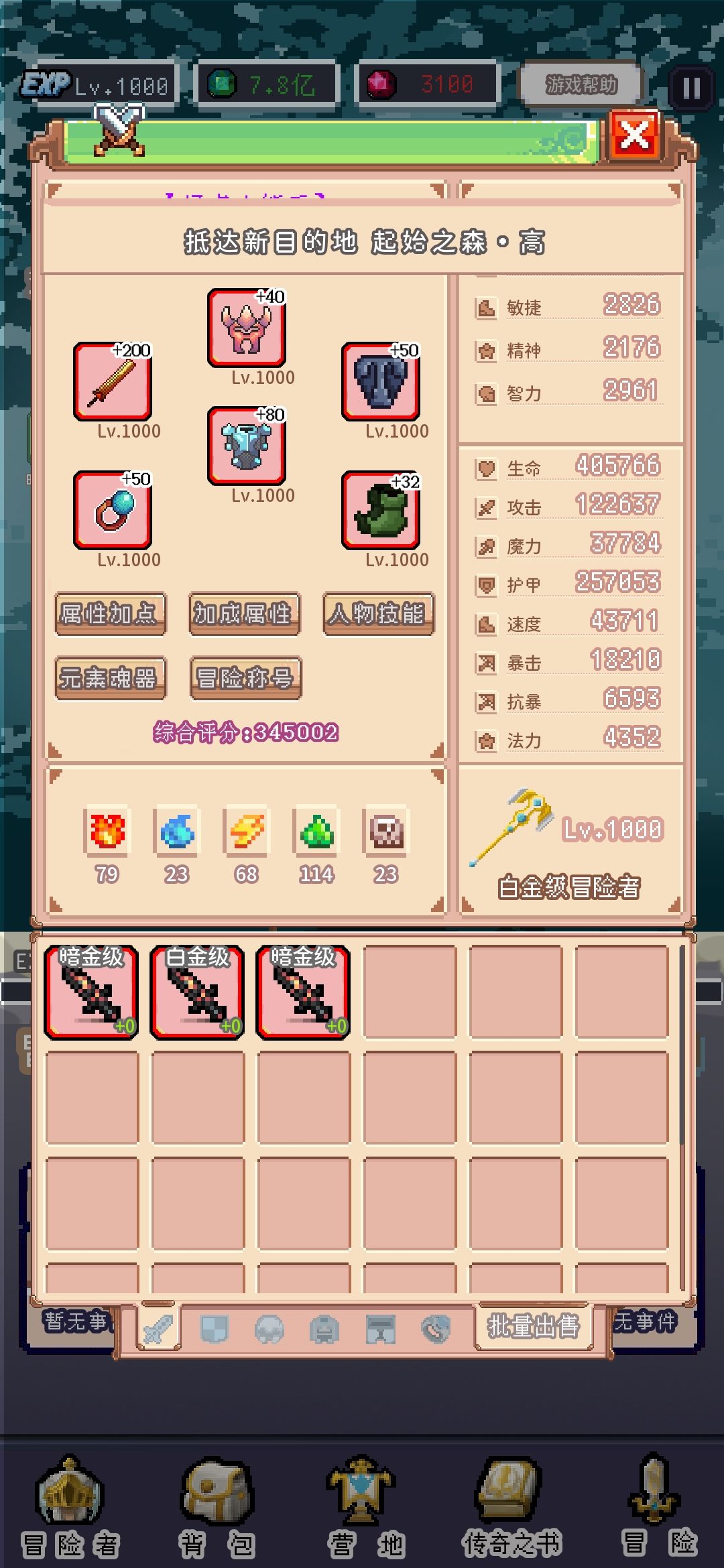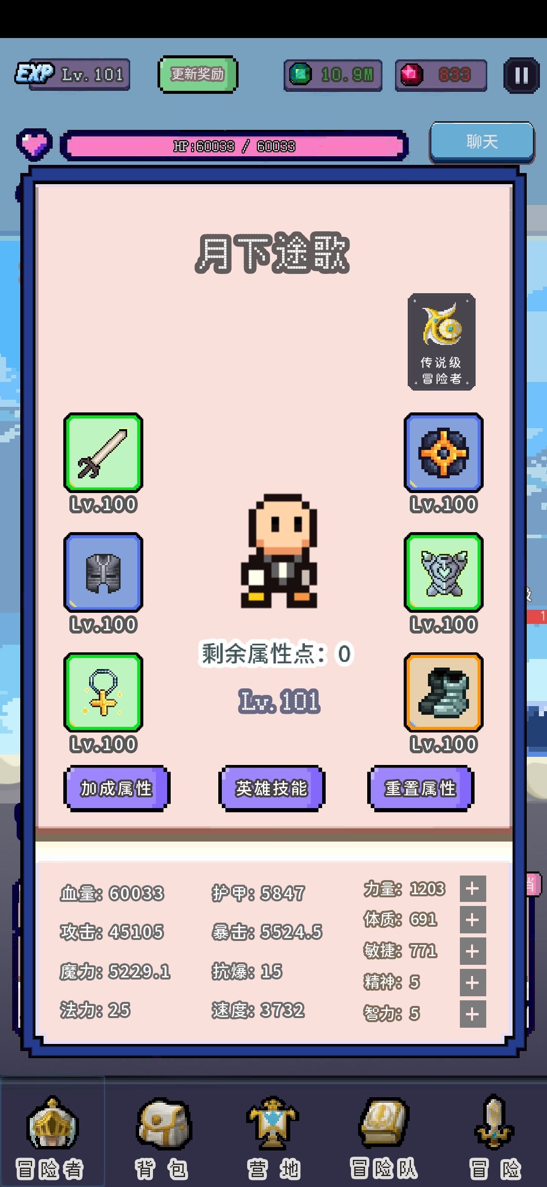 不用在意幸运啥的因为你不一定是欧皇,所以随便加,前期加点堆敏捷,攻速好了里面的历练速度就快,前期不用过图第一张图碰到十级左右怪就可以回到开头了,等级进度不影响历练经验,就这么肝到100级,每15级做一身白装就行有更好的最好,其实无所谓,主要还有主城的挖矿攒碎片为最后通关攒材料做装备下面提供我的垃圾装备图片和属性 堆攻击和攻击力加成就行攻击力有4w到5w不需要刻意对攻速,最后有20的吸血就行。。。闭