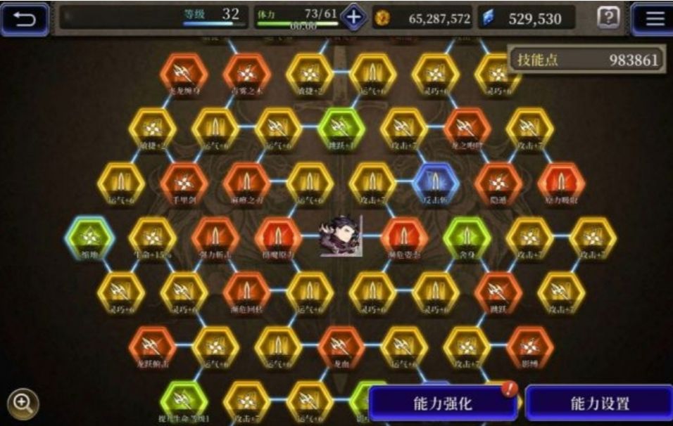 说说技能系统! 每个角色都有3个职业,其中主职业固定,副职业可以随意更改。 在角色技能盘界面, 黄色被动属性加成,提供各种属性 红色表示主动技能,需要主动释放 蓝色表示反应型被动技能,比如这个就是蒙特被打之后有概率减轻伤害!注意只能携带一个! 绿色表示常驻的被动技能,更多的是为你加属性,但是只能携带2个,需要自己取舍 每个兵员都会有自己的多项主动能力和被动能力,具体可分为普通攻击、主能力、副能力、