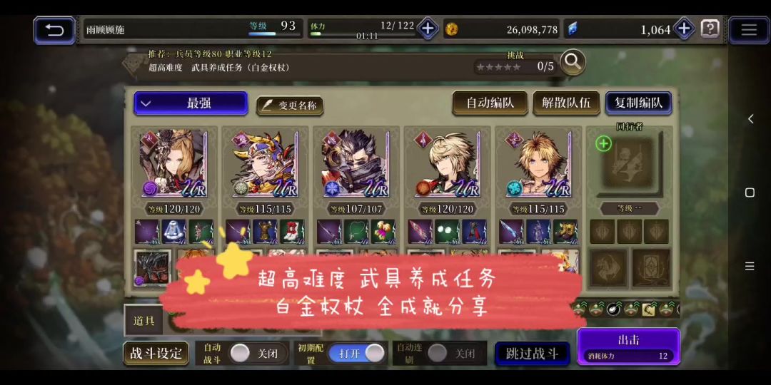 本关敌人弱暗, 部分弱光, 弱斩。 实力不足可以借金弟弟和黑妈完成成就。 闪避队目前基本可以做到无伤