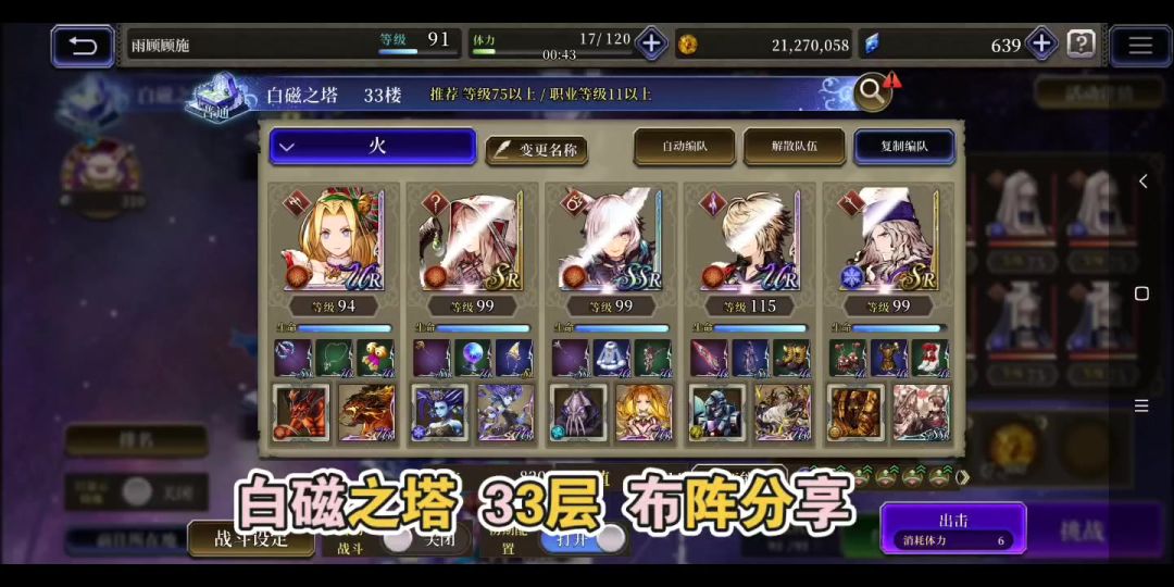 白磁之塔 33层 布阵分享