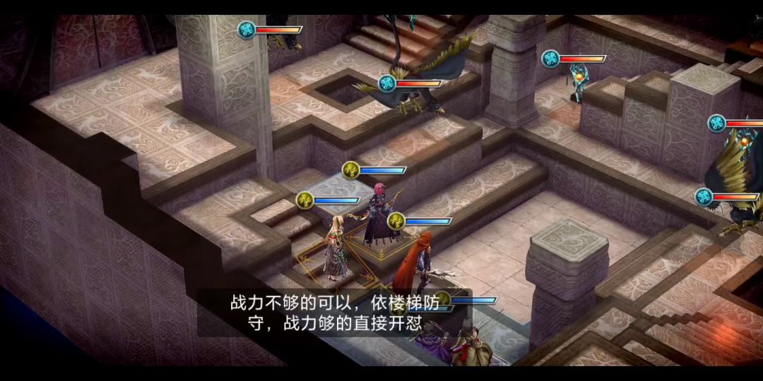 敌人开局神速圣骑从两侧楼梯冲上来, 通过合理布阵可以集火一只, 然后击杀绕路过来的第二只。 敌人弱冰,弱魔法。法师弱射击。sr, r兵员都很好用, 养成资源消耗也很低的。