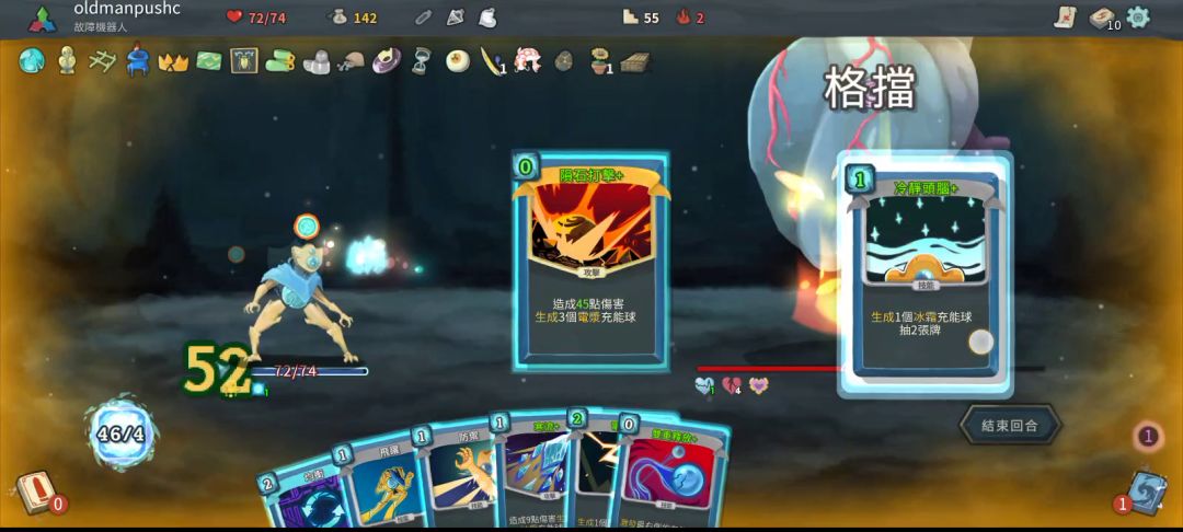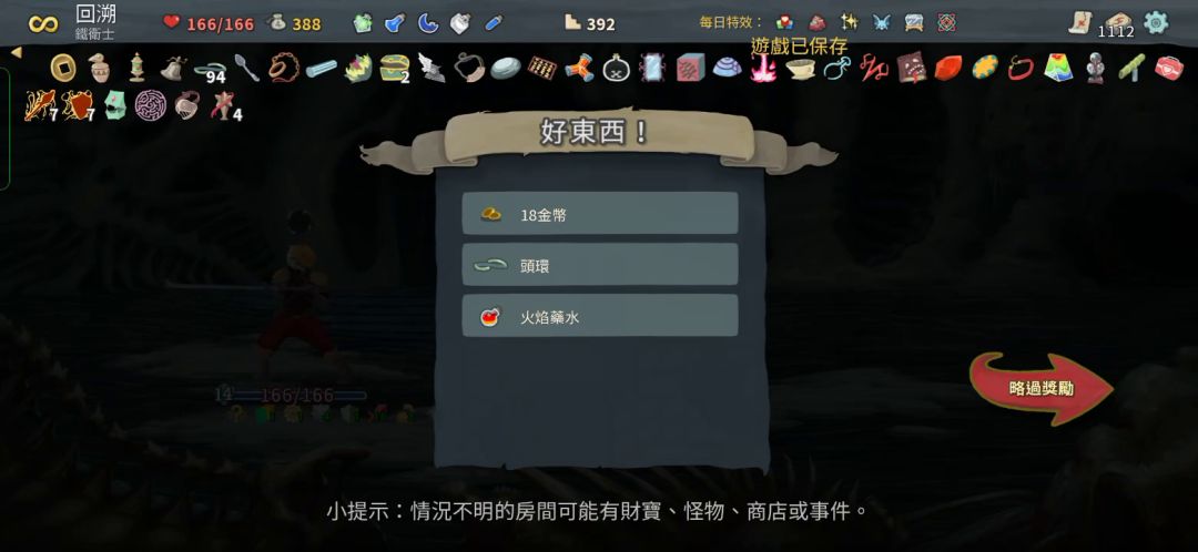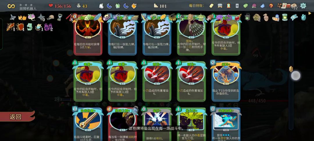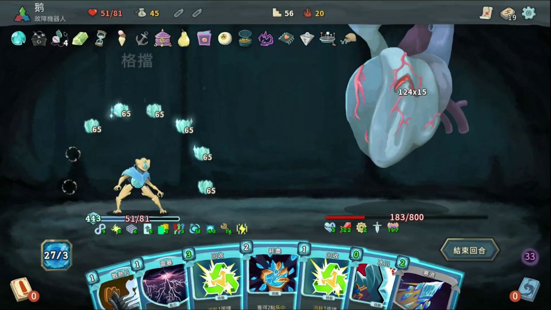 保命:一个蜥蜴尾巴 三个瓶中精灵 输出&防御:200基础伤害的匕首(鬼知道怎么打出400伤的),硬撑x2 耸肩无谓x4 续航:黑暗之拥x2