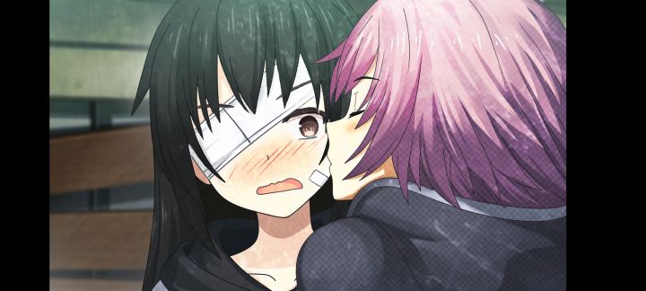 打到临近真·结局的时候,我已把感染值牢牢控住,但九玖的感染程度还是不可避免地与日俱增。昨晚刚玩完这个结局,那张背靠背的cg实在戳我。九玖和她模糊记忆里那个白发紫瞳的女孩重合了,有一张过场图上也写着她和那姑娘(就是林楠社会实验时遇见的调皮妹子,名字忘了)很可能是一个人。林楠后来做出的事情令我有些震惊。她心里也有九玖,一直都有,只是末世废土之上,爱之花来不及绽放,生命就先一步凋零。