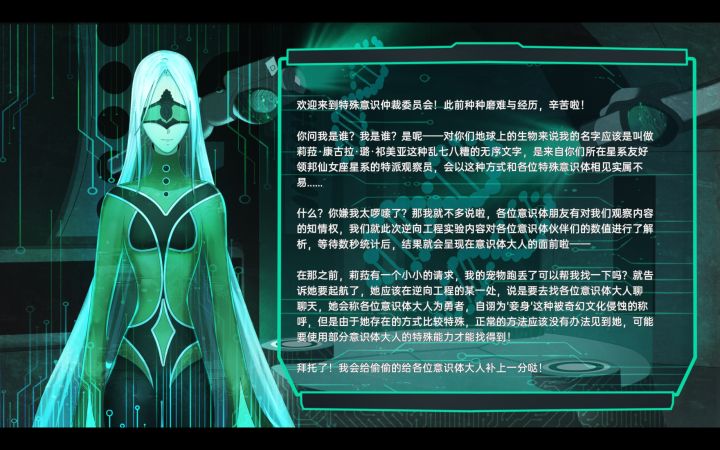 还有就是仙女座的特派观察员莉菈。我不认为重名是巧合,但她不太可能就是九玖的朋友莉菈,最多存在某种关系,因为莉菈的性格一本正经,而这位观察员言语却十分诙谐,再说莉菈是个普通人,死因也是九玖的人类仇家,总不能穿越。而观察员提到的自称“妾身”的宠物,十分想见到仆从的意识体,并称仆从为“勇者”(可能是因为仆从对逆向工程做出了贡献),存在十分特殊,位于逆向工程也就是地球中,所以它不是(做)人,且与仙女座有千丝万缕的联系,观察员想对这个宠物说马上要启航了,启航只能是从地球离开去往某个地方。由此看来她的启航本来想带上这个宠物,但现在找不到了,那么北上仆从集团的动机就有了解释——他们在找这个“宠物”,虽然北上产生已久,但外星人的时间观念和我们也不一样。这个宠物在游戏中应该还没出现过,它与现在的任何一位人物都对不上,毕竟没听说过谁自称妾身去找仆从聊天还称他们是勇者