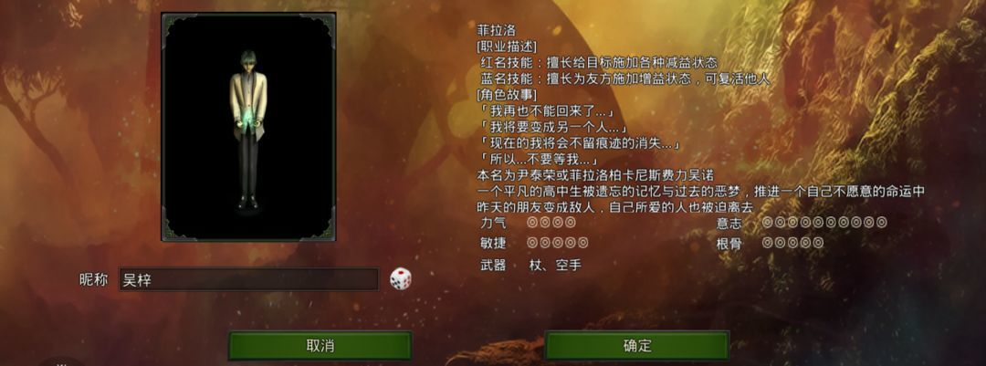 游戏中玩家必须在9名角色中选择一名,每个角色都有各自特长,玩家可以根据自己需要进行选择。本名为尹泰荣或菲拉洛柏卡尼斯费力吴诺,平凡的高中生被遗忘的记忆与过去的恶梦。推进一个自己不愿意的命运中,昨天的朋友变成敌人,自己所爱的人也被迫离去。虽然唯一的兄弟仇视暗算他,在这种残酷的的情况,他依然用宽容与耐心来包容所有的痛苦,软弱躯体里的意志力却可以控制这个世界。 这股力量不是用于破坏,而是用来创造伟大的奇