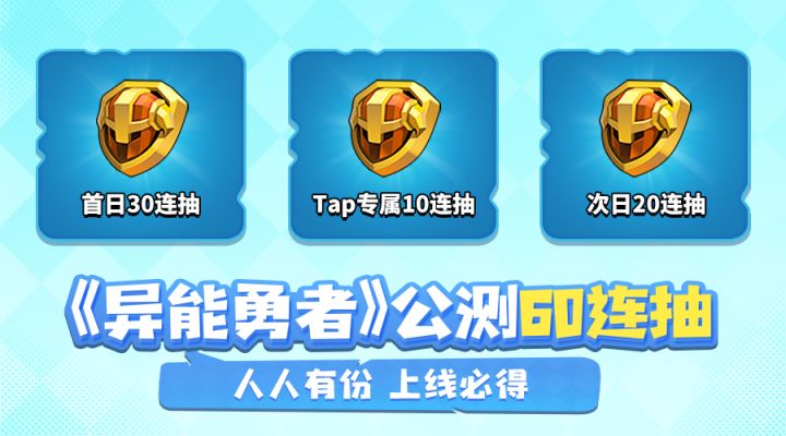 欢迎点进来的各位,我们的【异能勇者】终于于今日早上10点正式开测啦!不仅如此,我们还未参与测试的各位小伙伴们都准备了一份惊喜福利!只要在开测首月内(8月6日-8月31日之间),均可领取我们为大家准备的开测大礼包一份!内含【10连抽+500钻石】!加上游戏内的【50连抽福利】一共可以免费进行【60连抽】,还有海量资源,让你一次体验过瘾!公测开启,先进游戏就快人一步!大家快点点击下方链接,前往游
