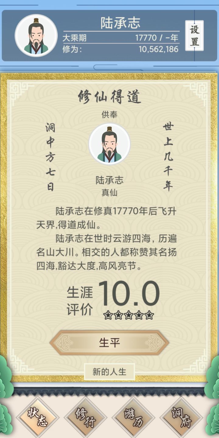 10岁:开100修为礼包QZDF27QW、买道君经、韵灵丹。开始选择题尽量+道德。因为很多事件我们必须做坏人才能利益最大化,为了保持较高道德,有必要开局多一些道德。道德高事件发生几率更高、事件结果更有利。后面无关痛痒的一点点损失都忍了保持道德。失火不要救、母子求救不要救、邪修的药要抢来吃(-体魄也忍了,+修为更重要)。多玩几次就会明白这些事件要怎么选择。总之80%的事件你都选择最邪恶