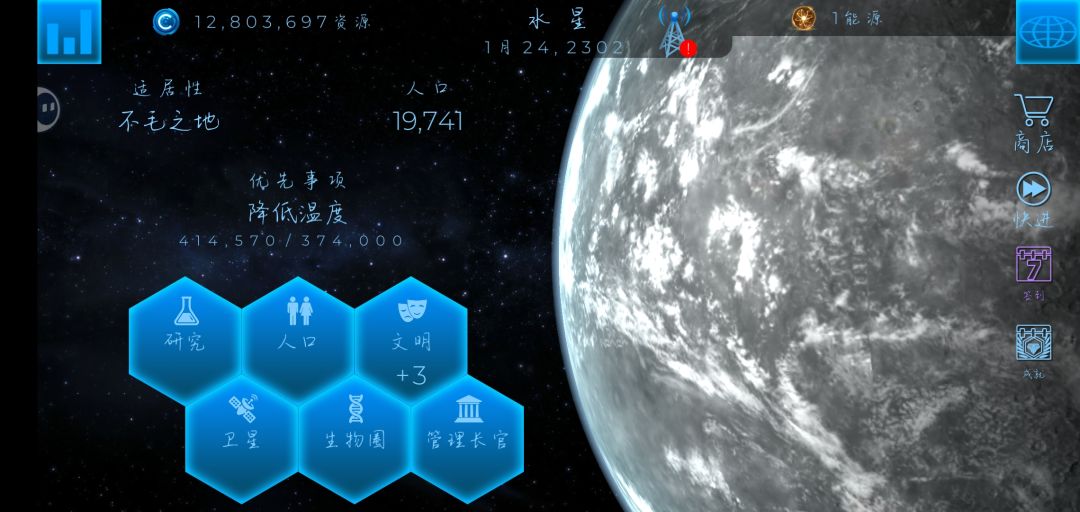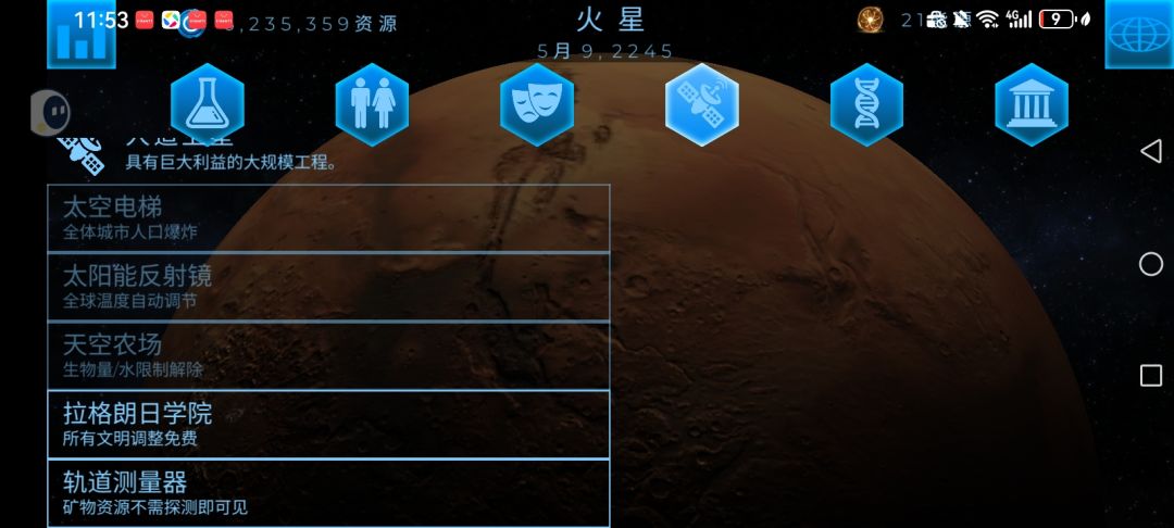 选了赫淮斯托斯基本就可以躺平了,生物量不用管,开局猛猛造矿,再造太空港和穹顶,然后租个实验室研究,因为会有突发事件,气压和氧气很容易高,需要尽可能压低,幅度建议保持在加减5左右,温度则基本不用管,会随气压变化。卫星就造学院和探矿,然后不停加人口。我用这个方法两天就通火星了,现在在尝试其他。#飞跃星球