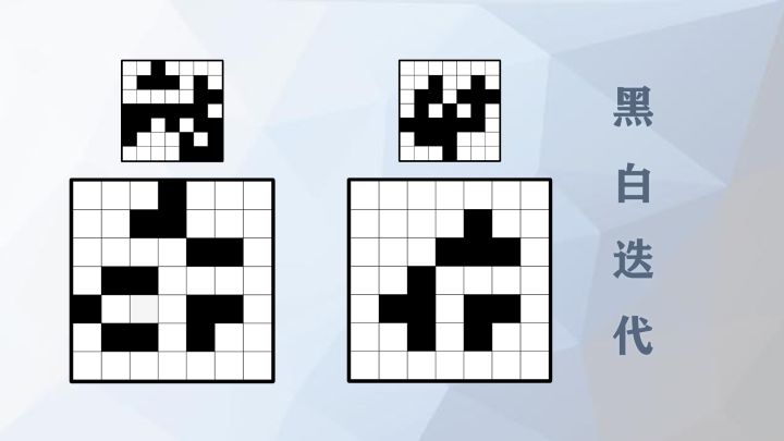 点击操作盘上的任意一个格子,格子本身和上下左右4个格子都将反色(原来是白色变成黑色,原来是黑色变成白色),采用该基本规则拼凑出目标图形。