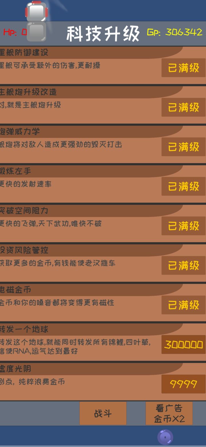 科技升级要的金币也太多了,或者说加的属性也太少了