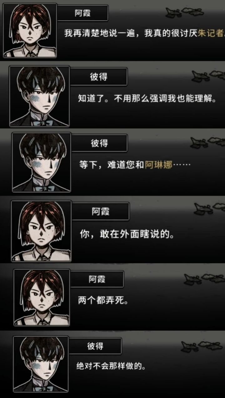 在22年7月玩过,现在是在pc端上购买全集,一些支线+一个结局差不多50h。美工十分出色 很喜欢画风才玩的,是我玩过最高质最好玩的视觉小说游戏。以战争为背景的游戏题材 介绍当时的历史发展和政治变化(内陆还是挺难上线的)#历史向 #剧情 #微暴力 这是游戏标签剧情方面很容易就能代入内疚感和负罪感(?) 玩到十几集被各种操纵和道德绑架已经有点窒息了,个人理解主角彼得不算没有国籍 只是他很迷茫不明白