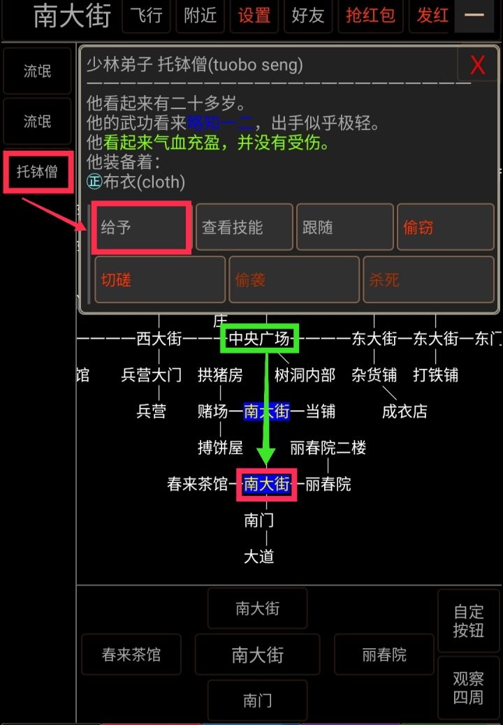 少林寺西碑林中有一石桌,上书秘籍功法,各位少侠可入内研读,学习5项空手基础各100级(包括基础指法、掌法、拳法、爪法、手法)。但少林寺正门从不接待俗人,唯有少林弟子及持[少林英雄令]者可入,这里先教大家怎么拿到英雄令。来到扬州南大街,找到[托钵僧]→点击[给予]→[黄金1两]。就可以得到[少林英雄令]了。此令牌只会存在游戏时间一日,使用完务必存入储物袋,下次需要再拿出来就可以无限使用啦