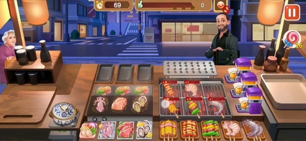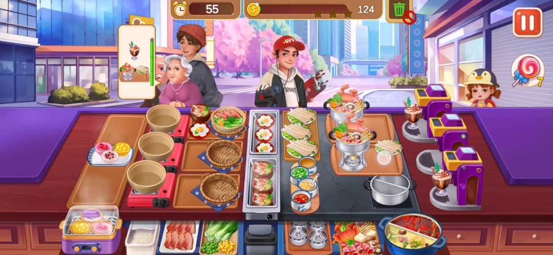 其实对我来说还好,我比较难的地方就是炒菜店和烧烤店,其他的都很有意思,我尤其喜欢火锅,咕噜咕噜的声音特别治愈~