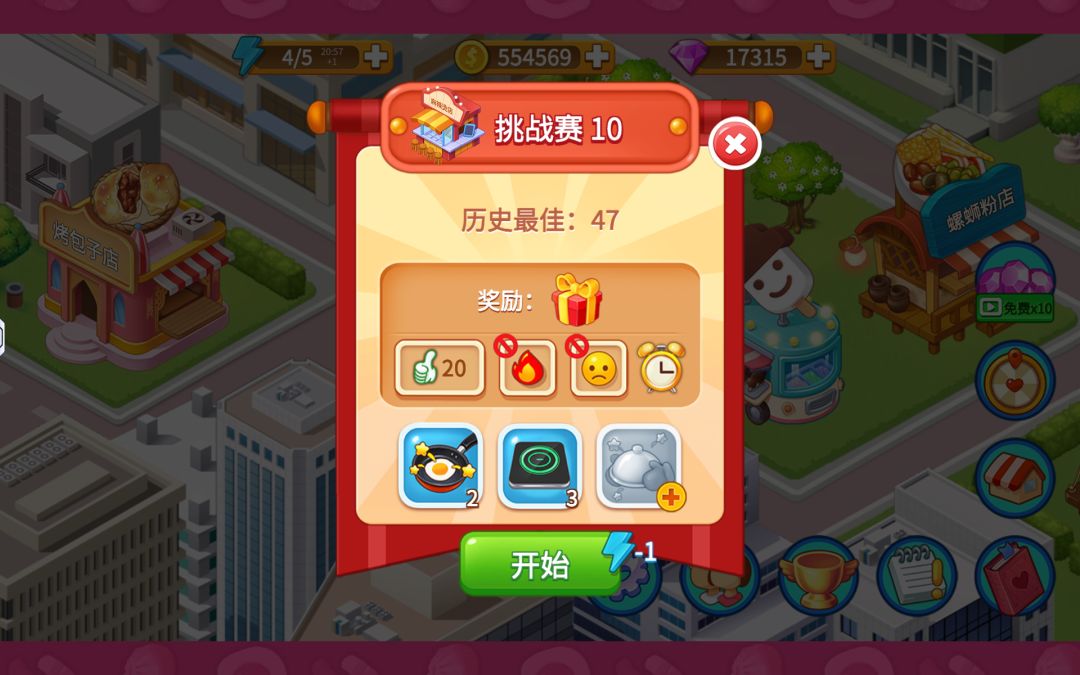 烤冷面的挑战赛感觉是最容易上手的了,基本上是拿这个关卡刷宝石#发现好游戏 #游戏日常 #楼下的早餐店攻略 #楼下的早餐店