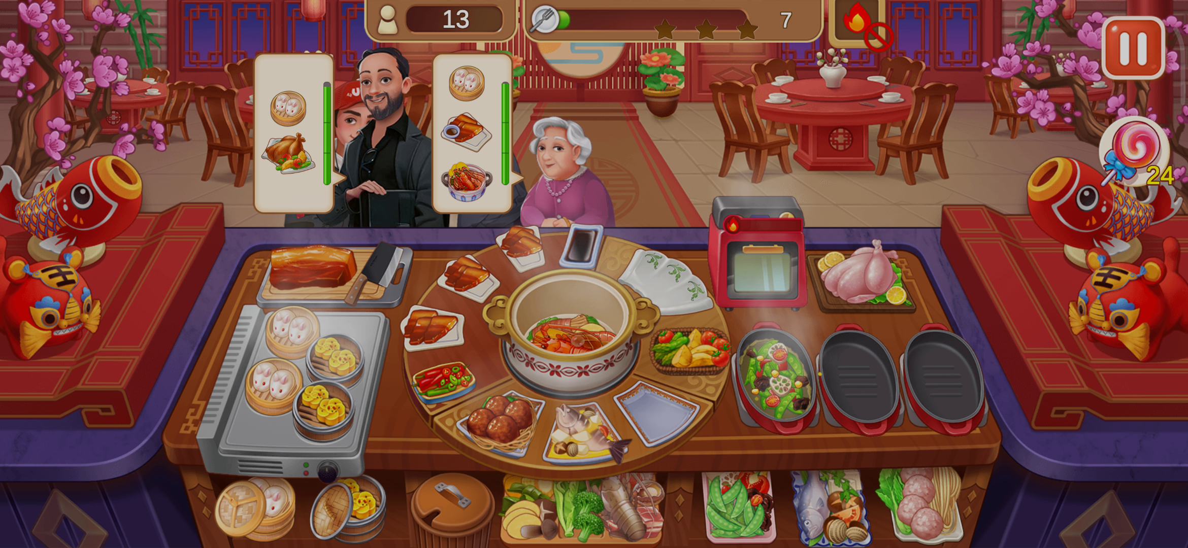 啊哈哈,跟大家聊聊天吧,年夜饭我只知道叫它年夜饭,好像没有官方命名。 去年我玩到一半,没体验完,今年一上手就卡死了,浪费好多钻石,我又不想回顾新手教程,于是就痛并快乐着地玩耍了,到现在不说多顺畅吧,也总算是熟悉了,不过挑战赛没有红包总觉得少了点什么 通关的时候小财神爷发红包发的刷刷的,又是在锻炼我的手速是吧? 呜呜呜今年过年回不了家,只能在游戏里体验过年的气氛了