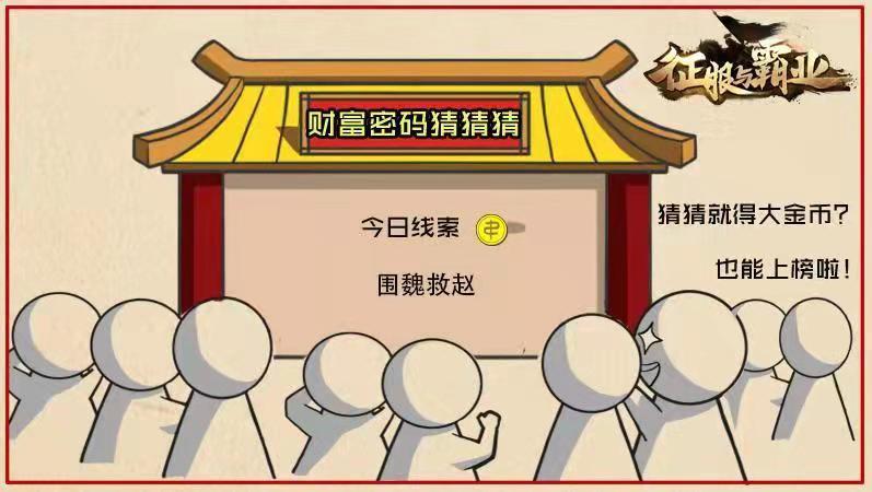 财富密码再度开启啦~ 每日领取200金币的机会又来了 保留原有活动玩法 依旧轻松解密 新赛季福利享不停 活动内容:5月9日起我们每日10:30将会在社区放出不同的财富密码线索图,根据线索,猜出口令码信息,使用口令码兑换金币。兑换于11点开启,数量有限先到先得,拼手速的时候到了! 活动奖励:每日口令码仅当日有效,限量兑换100次,每人每日仅限参与一次,每次兑换200金币。 口令码使用方式 各位君主猜