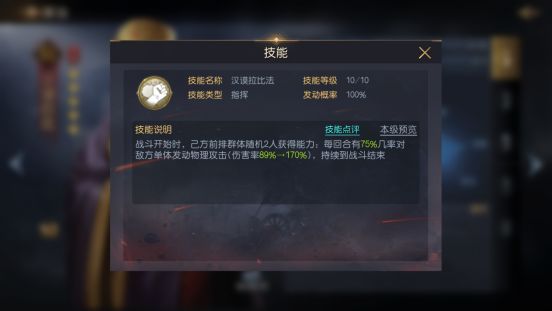 我们都知道在征霸中,每个将领最多只能拥有三个技能,也就是三个输出方式,若有这么一名将领,能够凭空为核心将领提供额外的输出方式,那么他对阵容的加成将非常可观,S2新将领中的汉谟拉比就拥有这样的能力。一、【将领解析】汉谟拉比是一名古典阵营的骑兵将领,他的属性面板中谋略和速度成长较为可观,但防御值偏低,整体承伤能力较弱,属于站后排的功能性将领。他的自带技能无需抢先手,开局释放后效果会一直存在,所以在