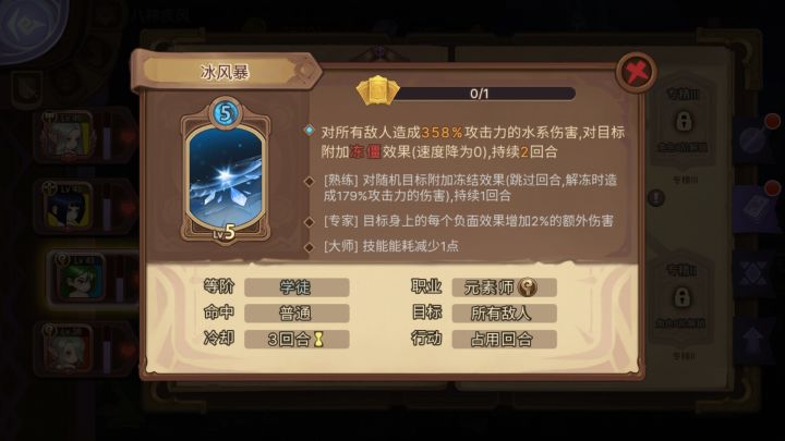 示例:法师[冰风暴],职业技能[元素亲和]