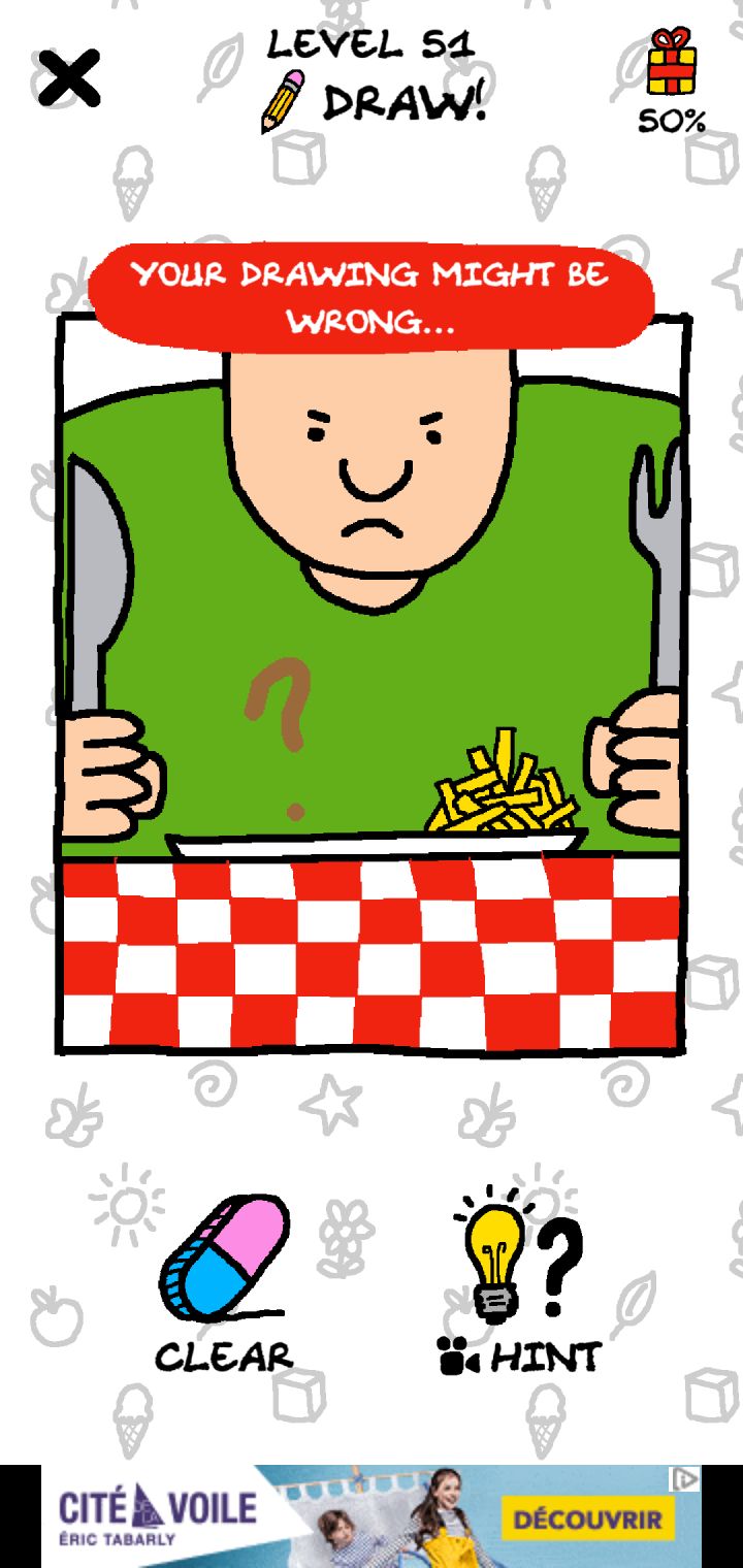 已解决 求助,问号是我画的,也不确定是不是这个位置,这个颜色我试了番茄酱、培根都不对😓===========编辑:图二是解(?), 我气得画了坨*给他吃,居然过了…新的又不会了……===========编辑:总之挺奇特的,随缘更新