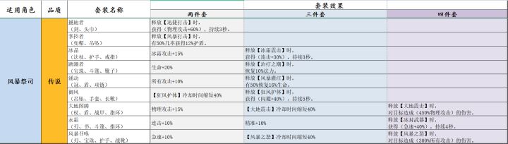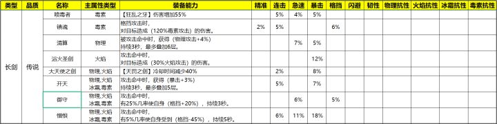 为大家整理了游戏内非套装装备(传说品质)的图鉴及属性说明