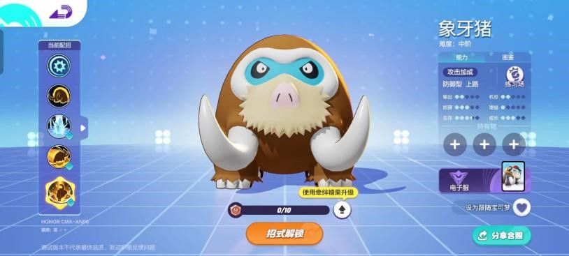 宝子们大家好,我是今天的宝可梦推荐官——橘子小姐。今天为大家带来的是我们象牙猪的攻略,你阻止不了雪崩,拥抱寒冷吧,感受极冰之力——象牙猪参上! 1:宝可梦介绍 象牙猪——防御型宝可梦 适合站位靠前,为后排抵挡伤害并衔接控制 2:普通攻击 我们的强化攻击可以对被我们冰冻到的宝可梦造成高额伤害。 宝宝们注意:一定是自己冰冻住的宝可梦,否则不会出现额外伤害哦 3:技能携带推荐 第一套技能 冰柱坠击+十万