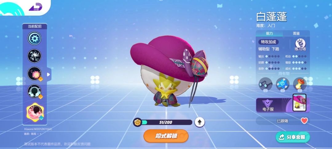 训练家们大家好,这次为大家带来的是白蓬蓬的游玩攻略,希望能够帮助到大家。 一、概述 1.宝可梦定位 白蓬蓬在游戏中的定位是【辅助型】宝可梦,是大集结当中的一个重要的群体治疗奶妈。但在大集结当中,不一样的招式和分支搭配也会让宝可梦的定位发生细微的变化,以白蓬蓬为例,常见的三套技能搭配分别定位是:治疗、增益、干扰。 本文将以入门难度较低,能够为队友提供持续续航功能的“治疗”方向进行主要