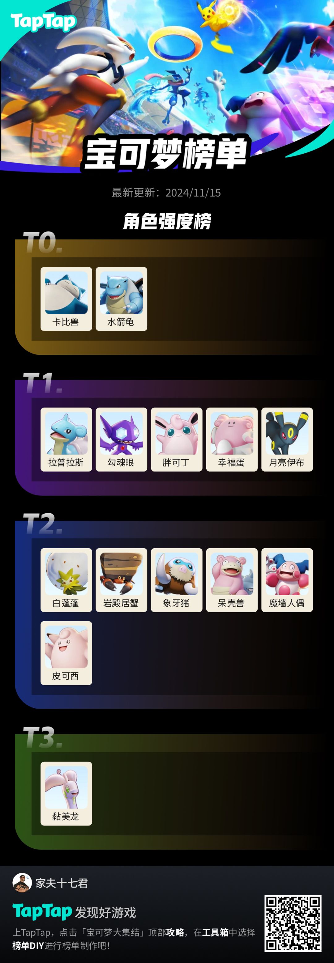 #宝可梦大集结图文创作大赛 #宝可梦大集结攻略 #宝可梦大集结 上分必选!还不知道用谁上分?全角色强度榜 哪一个宝可梦上分更容易啦 赶紧来看吧 首先就b级的宝可梦啊 这部分的宝可梦啊 大多数都是一个技能好用 另外一个不太好用 然后也没有什么很特别的机制了 所以用这部分的宝可梦上分 都会比较困难的 个人不是很推荐 然后 就是a级的宝可梦呢 这部分的潜力就很强了 要么就机制很厉害 要么就技能很厉害 就