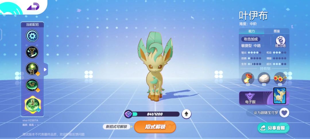 宝可梦叶伊布道具选择技能连招顺序教学