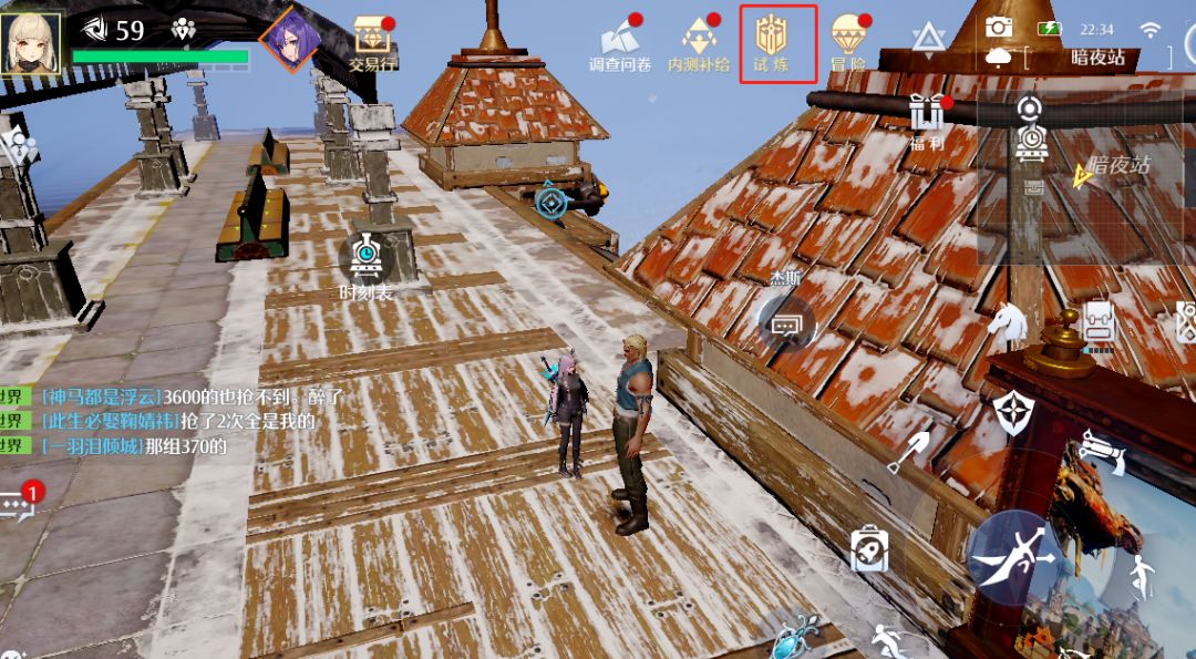 三、通关地形掌握:下面介绍一下60级之前比较难的几项试炼。 1、初级挑战者:阿鼠的世界。第一记住千万别往黄色标注的方向前进,因为前方都是河水,掉进水中,任务就会自动失败,第二加速是这关的基本要素。 2、中级挑战者:沉香老镇的快件。第一种是选择合适的路线,第一时间上马加速,在图片中适合的位置使用喷气背包结合之前的钩锁小技巧即可,第二种是需要等待火车,可以不使用任何技巧,新手冒险家只需要掌握火车的时间