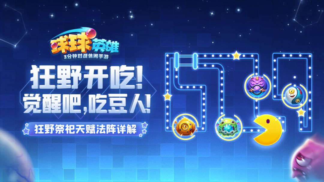 球宝们,上周双子神剑篇的介绍出来后,不知道大家是否都已经成功解锁双子神剑法阵并开始投入战斗了呢? 而这周,将会为大家带来狂野祭祀的法阵介绍。 该法阵的C位——召唤球球,其天赋特性非常有趣,不再召唤怪物干扰他人,转而召唤能直接吞噬我方怪物的“吃豆人”。 走,一起吃怪去吧! 狂野祭祀 天赋法阵介绍 狂野祭祀共有九个法阵点,其中第七、第八和第九个法阵点的代表球球为现在版本热门的繁衍球球、升星球球和召唤球