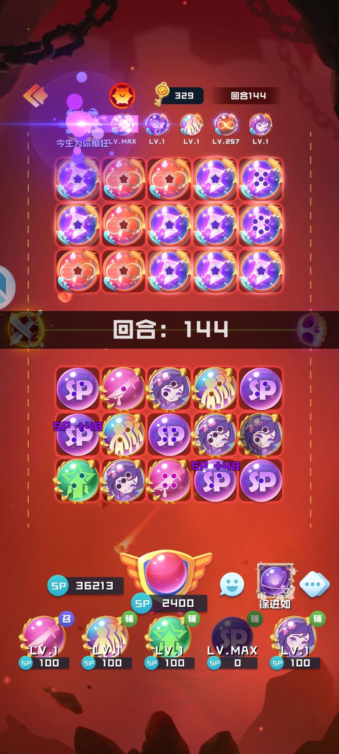 当合作队友是15圣以上。可以把召唤去掉 下面这张图也是好久以前截图的了。还有一个是48关刀满的图跟52关刀满的两个截图,。找不到了,找到了第一时间补发。 先来说一下。如何快刀。开局买不买球都可以。。等对面放好球开始。 全部铺满。有复制,全给繁衍。然后繁衍互合。一定要留一两个 空位 有刀互合。利用繁衍无限造球。当有三星复制,该给谁。这个要看情况。就是自己的sp多不多。如果不够或者很少。就给繁衍,利用