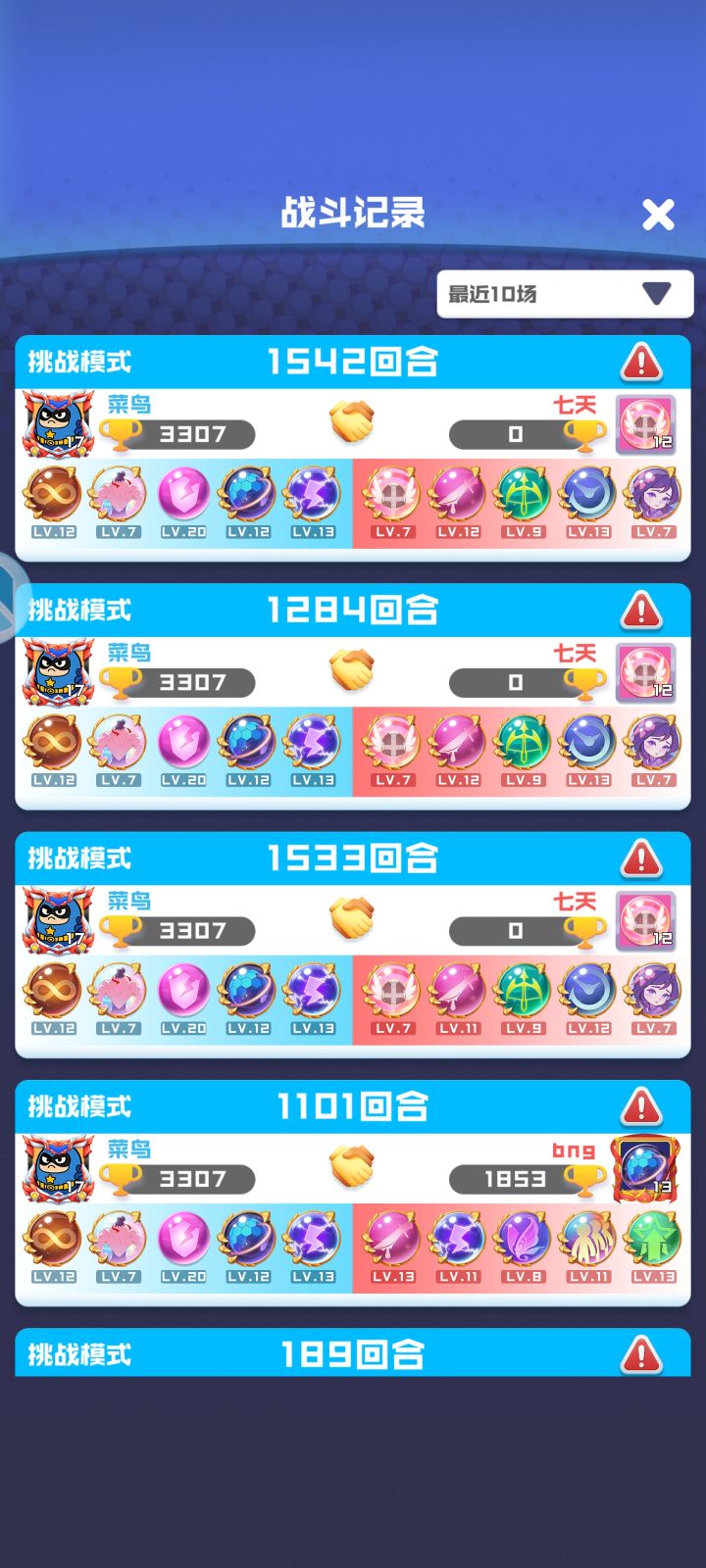 纯属无聊试试挺麻烦的,娱乐局打发时间。能稍微提高点回合数第一局13无+14无为1629回合。第二局双13无为1587回合。