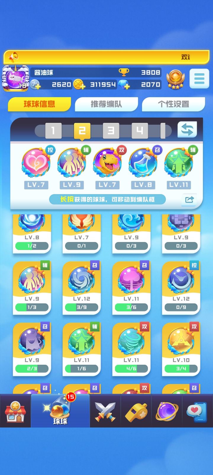 回归抽奖,限定球差不多就我拍的这三排,剩下的都是老球,我的阵容和球在剩下的图里,不充钱的话能有200抽,可以抽两个球,大佬们如果觉得补魔王比较好,我就用票子额外买120抽,升11魔王,因为我感觉我现在的阵容即便用7级卧龙还是有点吃力,有的时候就是打不过对面,欢迎大佬们说说自己的建议