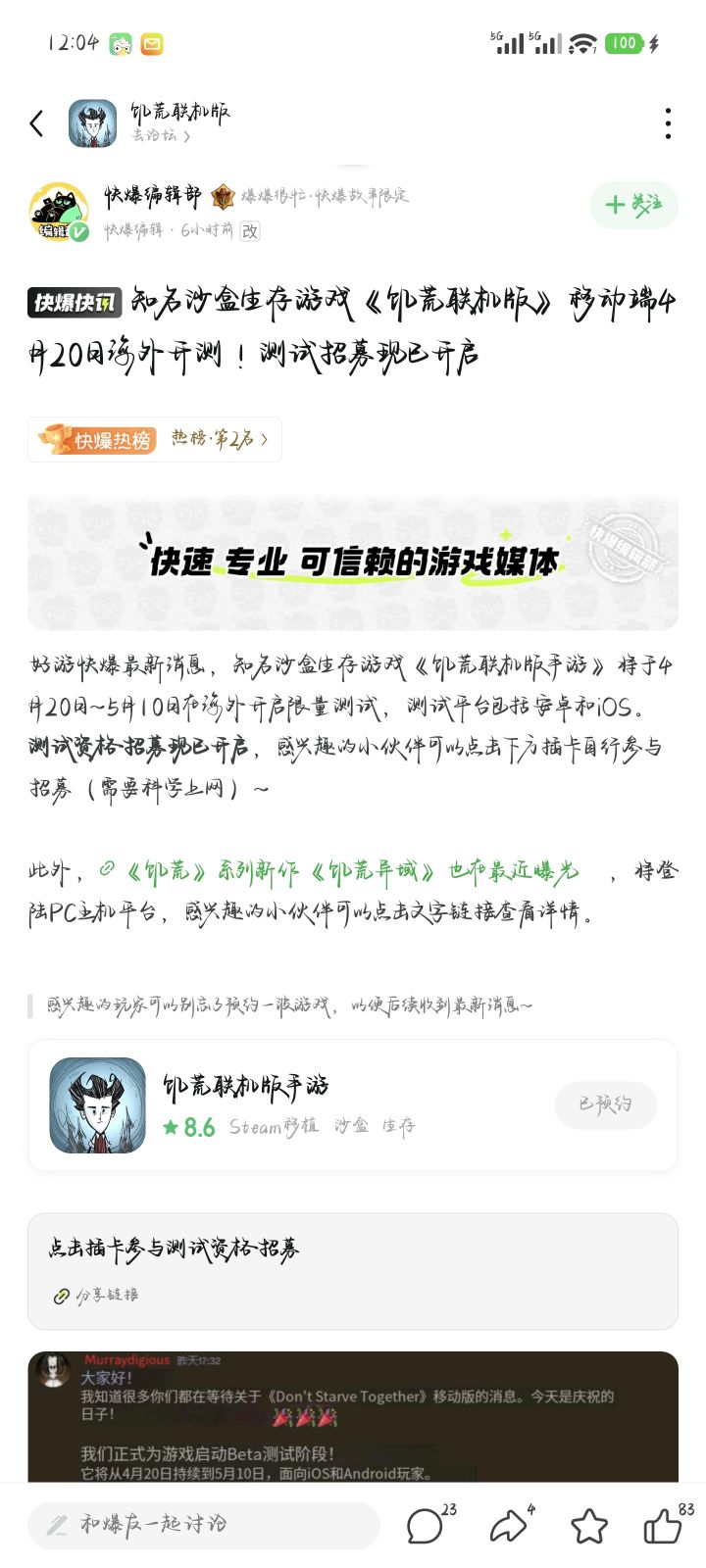 饥荒正版授权手游期待与各位见面的那一天!