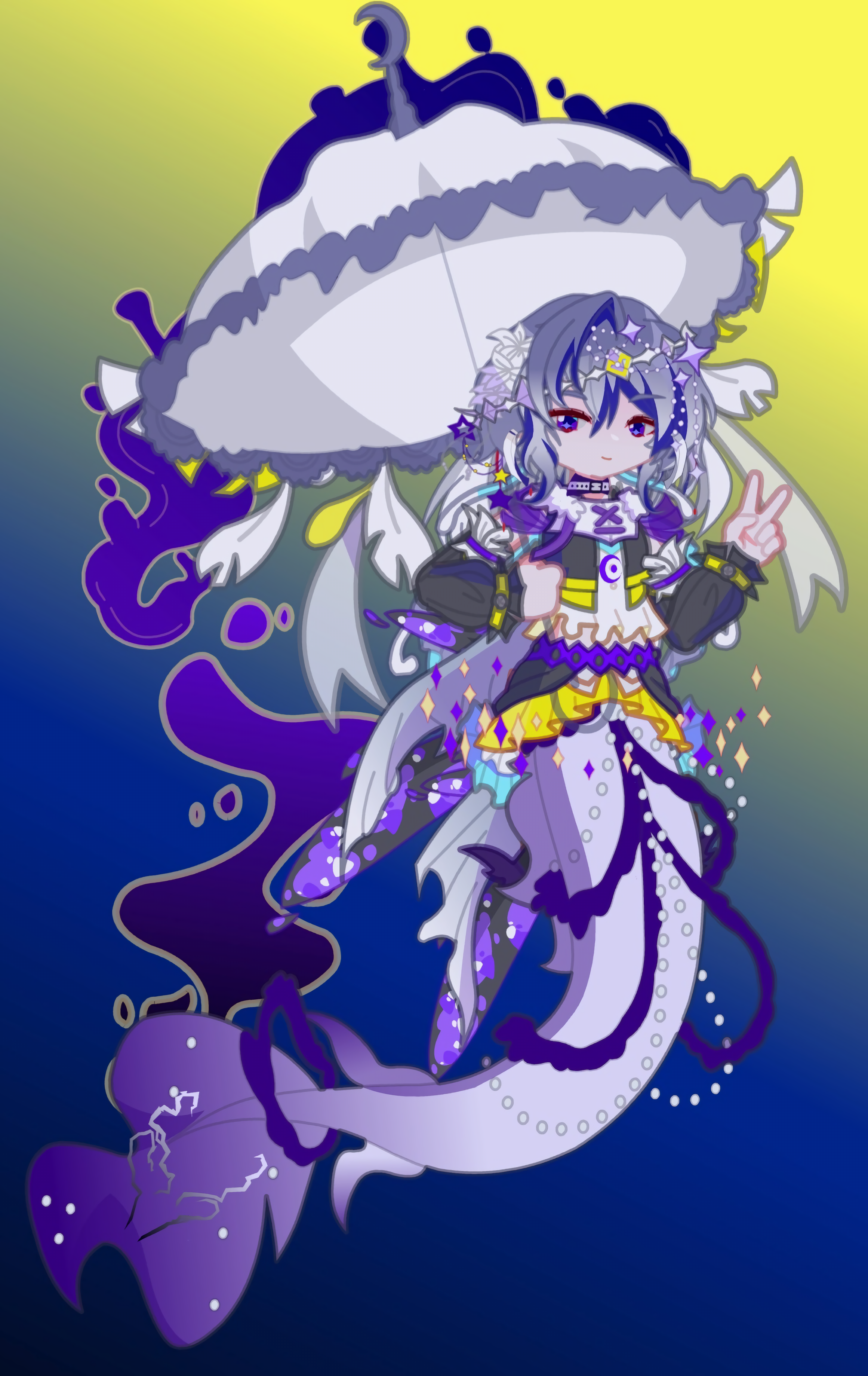 加百列:耳饰是友人送的(有友人的红棕色和自己的银灰色),外套是友人的红棕色、米迦勒的暖黄色和自己的银灰色,身上有很多绷带(以前的旧伤,仔细看的话肩膀上还有一处露出来的伤痕)。蒙眼是我的一点儿XP,意义是遮住眼神里的混乱(眼睛的颜色是:友人的红棕色),还有的意义是让人注意不到祂在盯着你(类似于异形那样不盯着你看,却非常有压迫感的那种?)。米迦勒:腰间的配饰、项链和耳饰是友人的遗物(自己的暖黄色和友