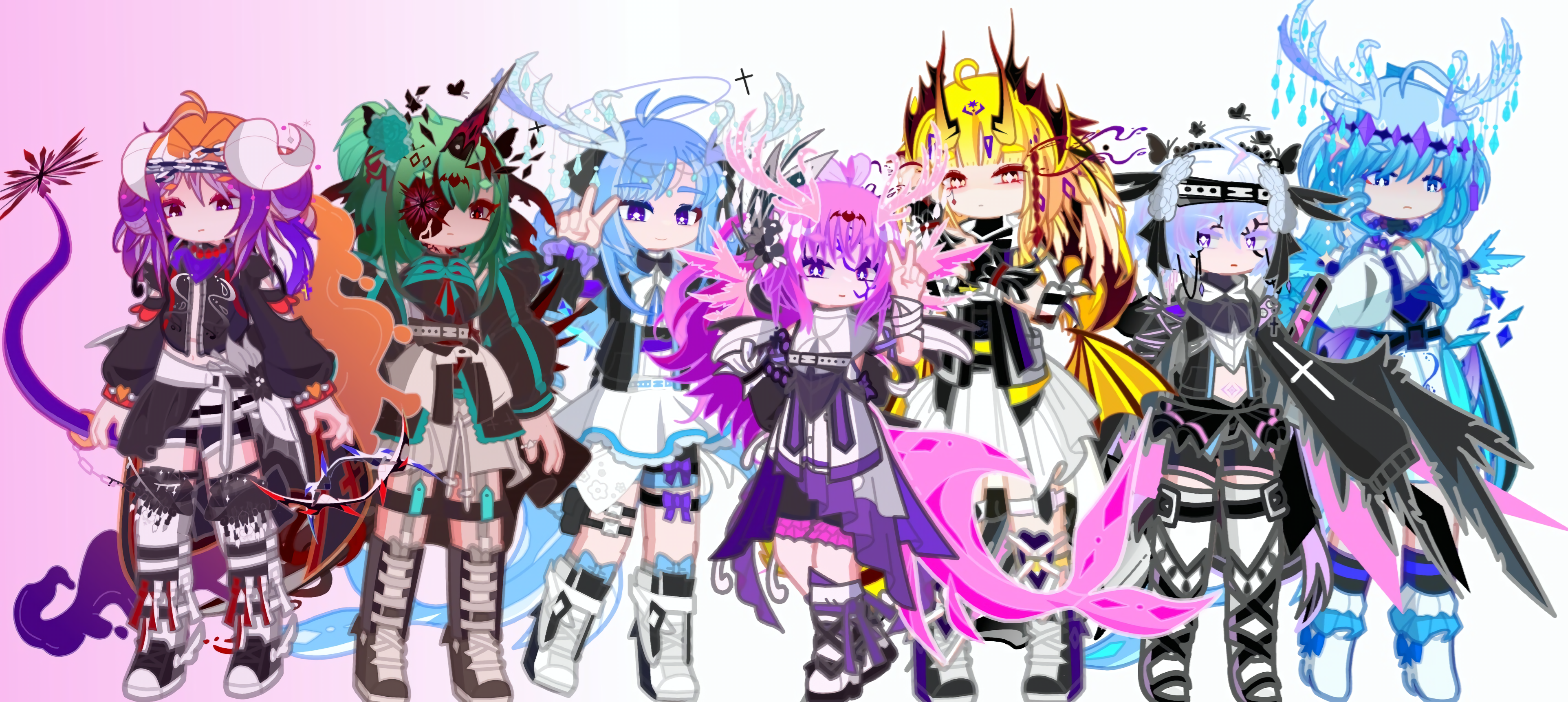 加百列:耳饰是友人送的(有友人的红棕色和自己的银灰色),外套是友人的红棕色、米迦勒的暖黄色和自己的银灰色,身上有很多绷带(以前的旧伤,仔细看的话肩膀上还有一处露出来的伤痕)。蒙眼是我的一点儿XP,意义是遮住眼神里的混乱(眼睛的颜色是:友人的红棕色),还有的意义是让人注意不到祂在盯着你(类似于异形那样不盯着你看,却非常有压迫感的那种?)。米迦勒:腰间的配饰、项链和耳饰是友人的遗物(自己的暖黄色和友