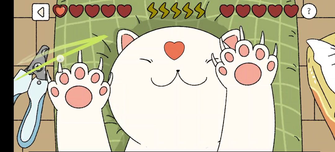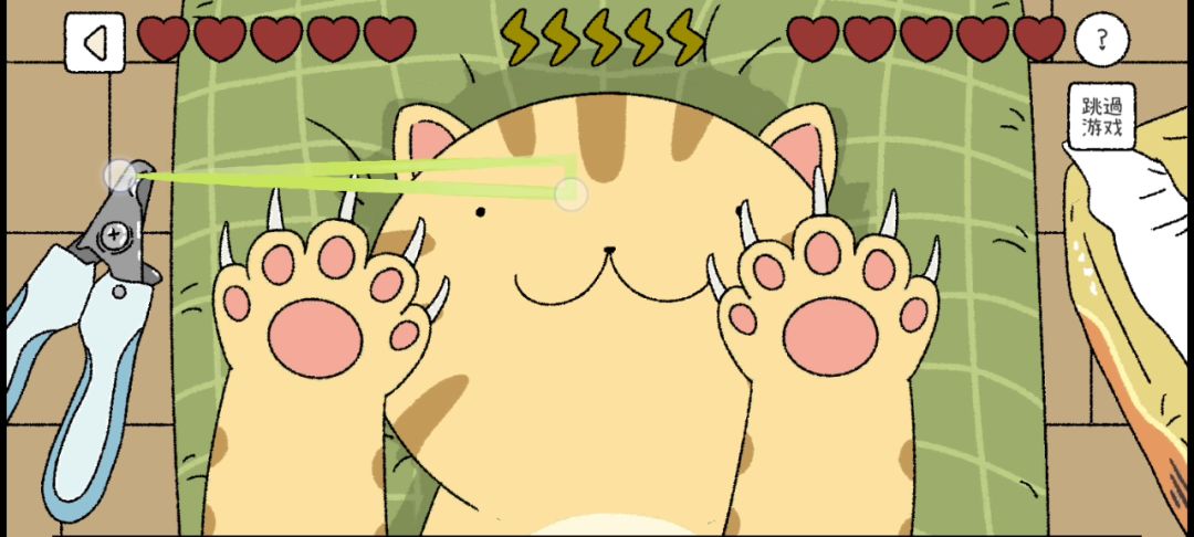 ①抚摸:只要一阵乱点就可以了,只要我足够快,就可以马上过 ②剪指甲:如视频所示 ③洗澡:只要把手机放在平面上就可以了