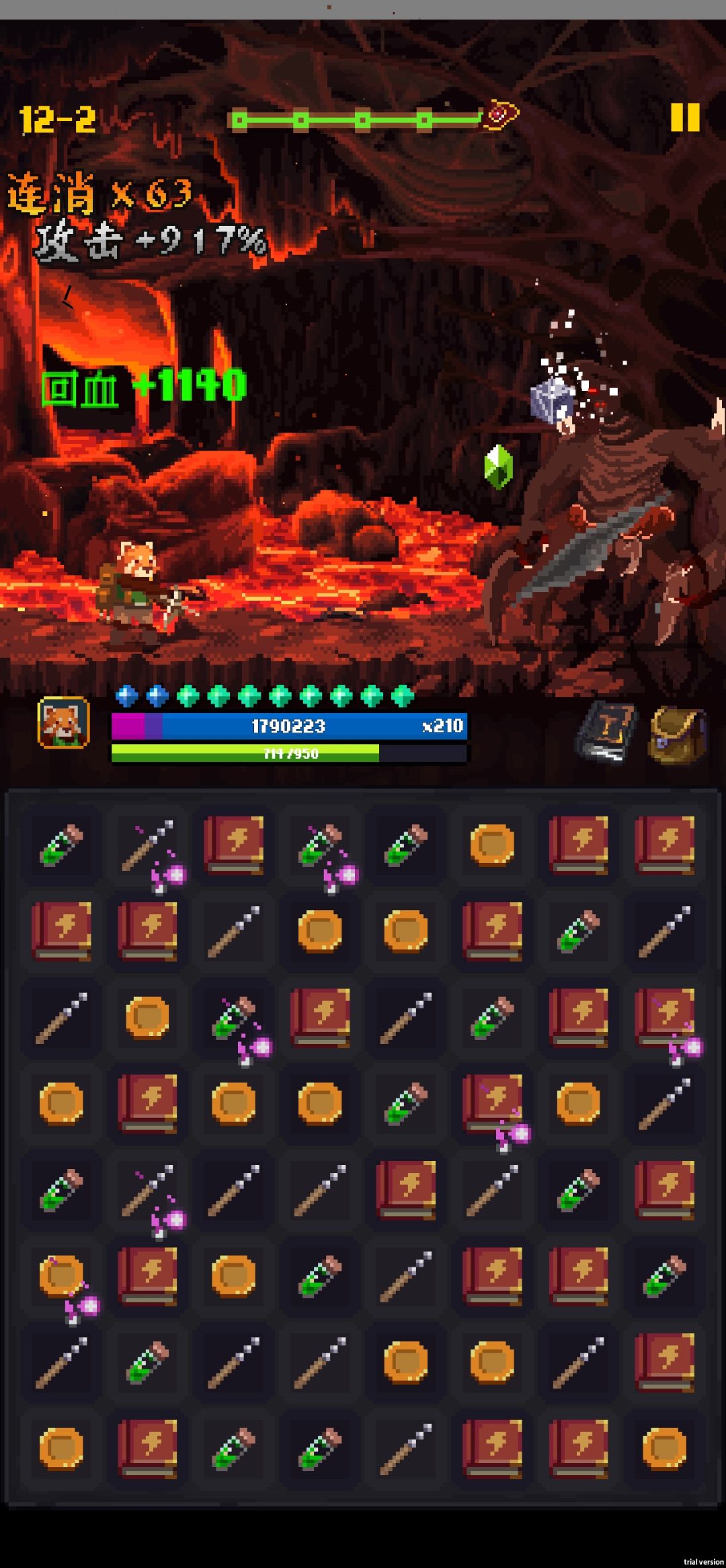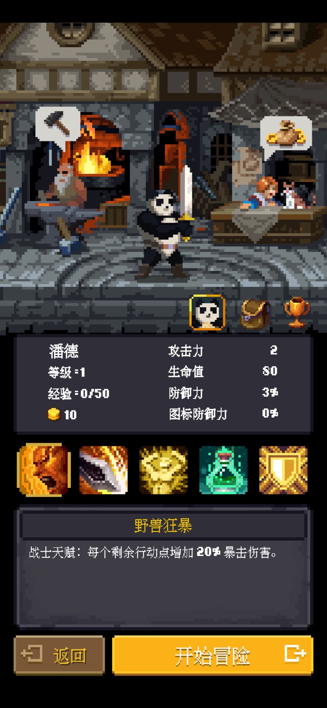 1.不得不说,运气的成分蛮大的,虽然通关了,但是重新打BOSS还是有好多次打不过。 2.最后的结算动画加个跳过吧,刷装备老是重播。。。 3.如果靠运气打到后面打不动了就跳到前一个大关打最后的BOSS刷装备,攻击和血量一定要跟上。 4.暴击很爽,玩熊猫可以带那个剩余行动点+暴击率的戒指,然后不用把行动点用完,赌一手人品暴击会有意想不到的惊喜。 5.一定要经常看商店,黄宝石,紫宝石,还有钻石!!!(只