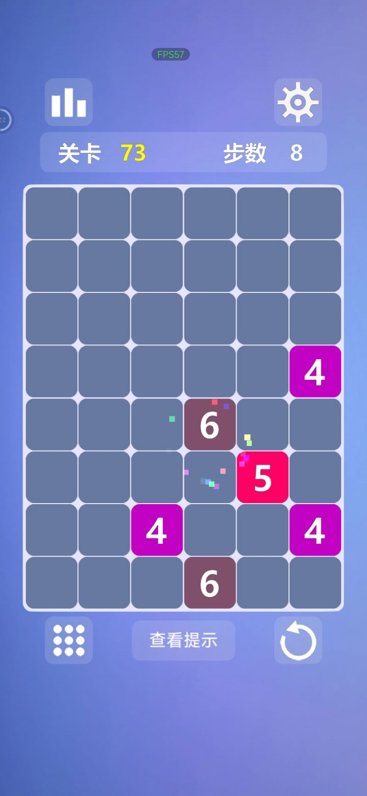 这关我完了好久都没过,其实一直知道一个道理,数字大的一定要动,因为小的数字移动只会更小,永远无法匹配,而且会耗损给定的步数,一直的玩法就是动左上角的 9 和 7,把右下角的 9,5,7 放在一起,左上角的好办,一步一步挪最终总会消除,右下角的永远会因为步数不足而失败,即使把步数减少到最小也不行,后来终于感觉自己路走窄了,把 9,7,6 放在一起,7 和 9 同时上移,5 和 7 彼此靠近,终于恰好