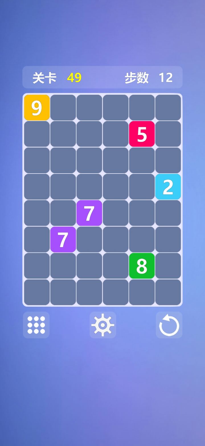 这关我完了好久都没过,其实一直知道一个道理,数字大的一定要动,因为小的数字移动只会更小,永远无法匹配,而且会耗损给定的步数,一直的玩法就是动左上角的 9 和 7,把右下角的 9,5,7 放在一起,左上角的好办,一步一步挪最终总会消除,右下角的永远会因为步数不足而失败,即使把步数减少到最小也不行,后来终于感觉自己路走窄了,把 9,7,6 放在一起,7 和 9 同时上移,5 和 7 彼此靠近,终于恰好