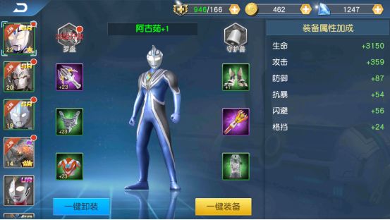 维护宇宙和平,此时是战乱风云!即使是超强的奥特曼英雄和怪兽们,也需要装备的呵护啊!突然冒出一个大问号:啥?奥特曼和怪兽们还有装备?当然啦,人靠衣装马靠鞍。奥特曼和怪兽也要穿衣的。不,也是要装备滴!这种让反派崩溃的路数在《奥特曼王者传奇》中就是秘密武器啦!装备将提供额外的防御能力,强大的装备在与反派的格斗中能为玩家减少相当可观的伤害!总之一句话:您值得拥有!以下内容很关键!一、装备能
