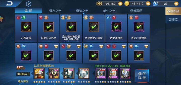 这游戏挺肝的,对于我这种无氪玩家,玩了一个学期,才九十多万战斗力,五星艾克斯,四星泰伽,四星詹伯特,三星爆炎,四星维克特利骑士形态,三星月光,三星艾克斯超越,但。。。就是没一个UR我tmd。。。😂