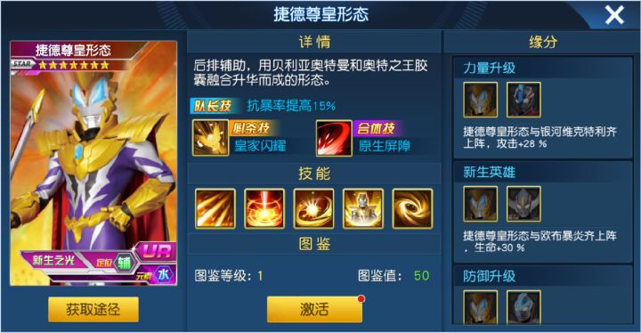 嘿,老铁们,你们的魔鬼又来咯。8月13日《奥特曼王者传奇》开放四位英雄人物!听到这个消息,各位是不是很激动呢?废话不多说,直接亮相!一、捷德尊皇形态阵营:新生之光定位:后排辅助。用贝利亚奥特曼和奥特之王胶囊融合升华而成的形态。属性:元素水必杀技:皇家闪耀。二、盖亚至高型阵营:远古之光定位:前排坦克。大地之光和海洋之光的力量融合并最大限度解放,以此变身而成的最强形态。属性