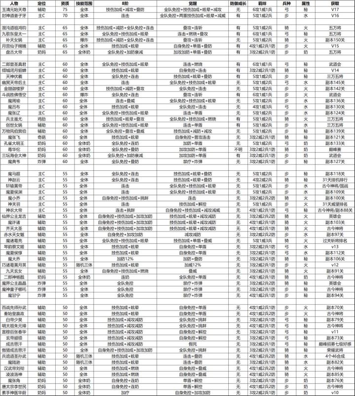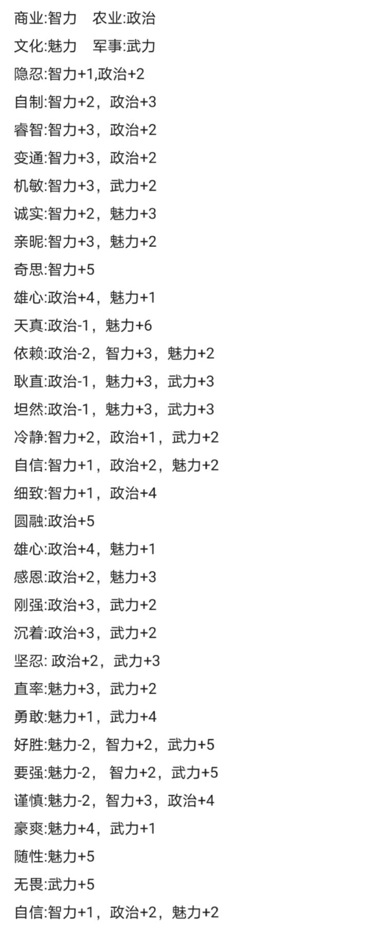 附上子嗣性格表和高级武将表