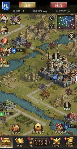作为一款三国策略游戏,国战玩法自然必不可少。国战在玩家等级到达35级时开启,选择任意势力即可加入到热血澎湃的战斗中,在这里组建属于你的最强阵容,率军攻打敌方城池,驻兵坚守我方领地,为了你的势力时刻冲锋在战斗的最前线!国战作为游戏的特色玩法之一,自然也要多花一点时间来给各位主公介绍:选择势力主公需要选择加入三个势力中的一个。在这里推荐选择强势势力,强势势力带来的收益和奖励一般会高于加入推荐势力
