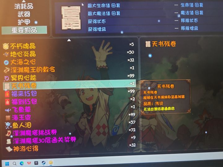昨天加今天,一百四十次的冥界,两百八十次的扭蛋,终于又让我扭到了一张天书残卷,一次冥界将近四分钟,这总共九个小时的刷冥界之旅,暂时可以画上一个句号了。接下来,毒大树,开始!